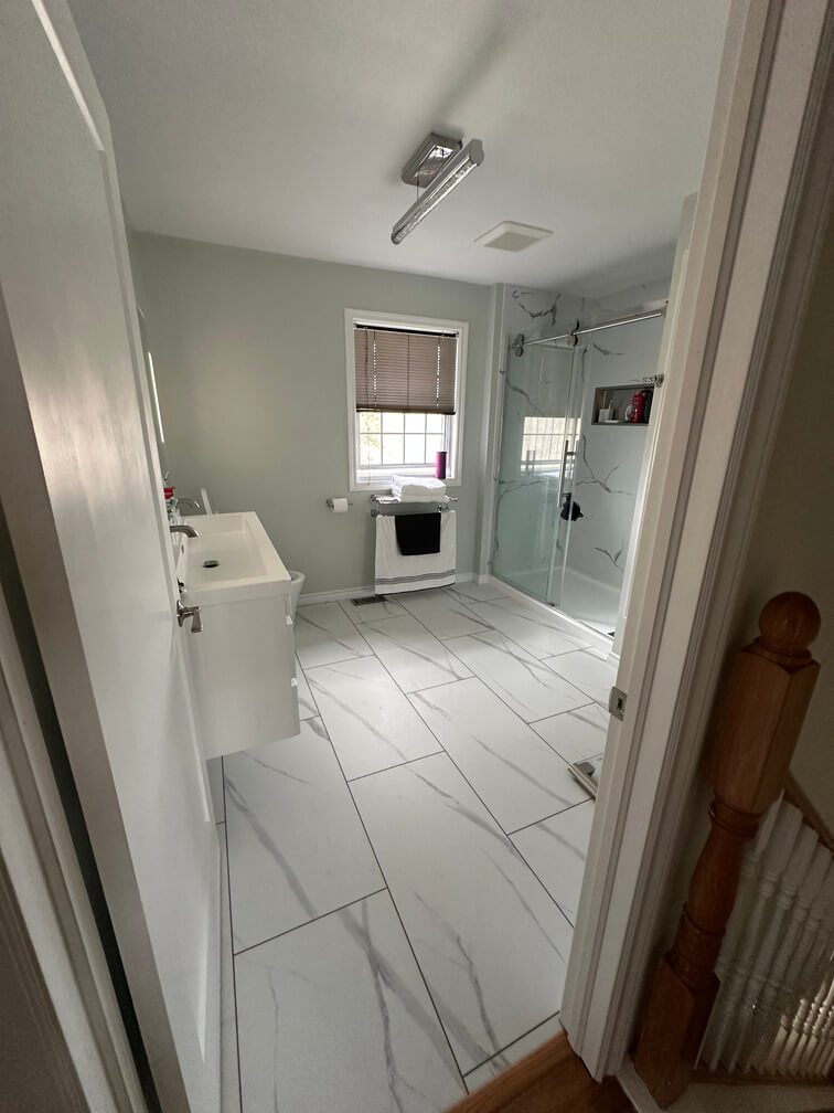 “This outdated bathroom got a fresh new start! We transformed it into a modern, functional space with updated fixtures, clean finishes, and a brighter layout—bringing style and comfort together in one beautiful upgrade.”